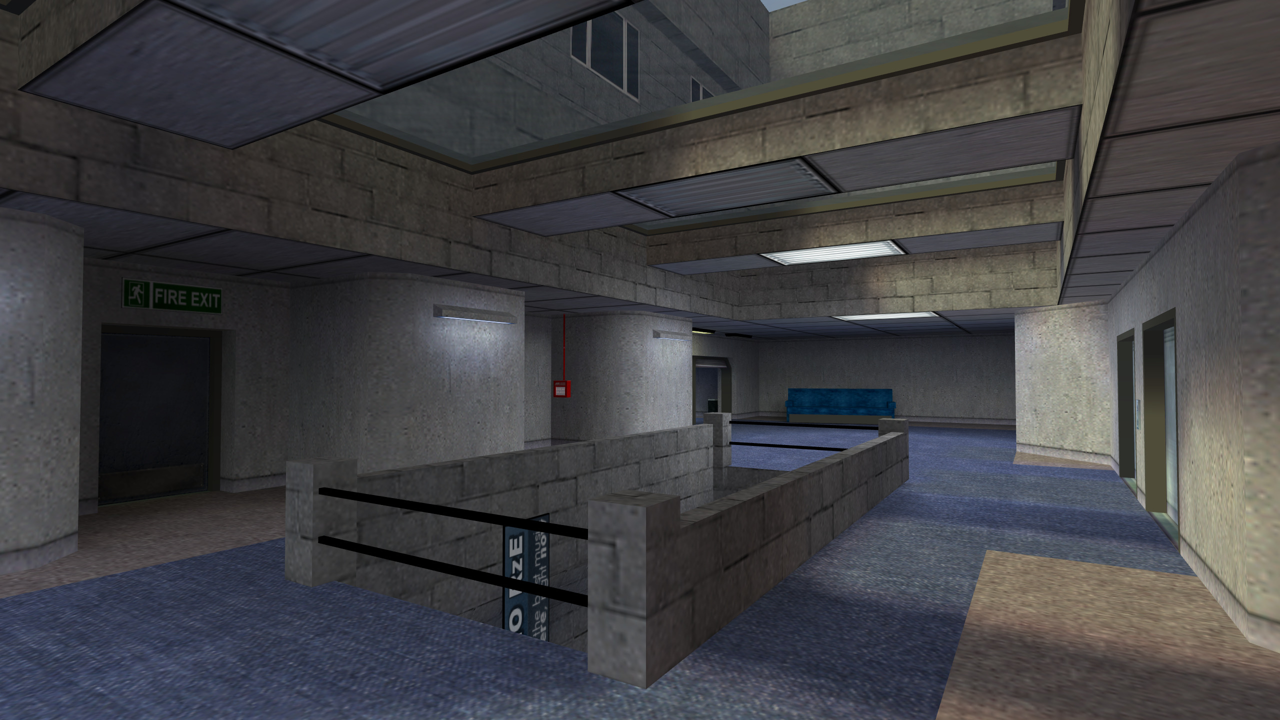 In retrospect, as a dark map with poor signposting, winding hallways, tight corridors and almost non-existent tactical agency, it probably didn’t play very well at all. It had a few oddities - like “On-Air” signs that flashed if a player was inside one of the (very dark) studios, and a couple environmental references to ‘The Matrix’. I almost certainly had more fun making it than anyone would have had playing it!