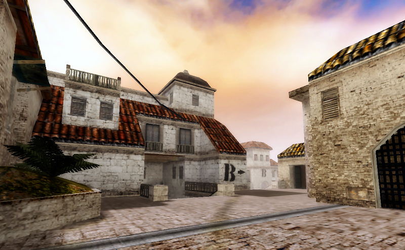 Sienna was designed in early 2004 to be my final map for CS 1.6. My desire was to create another map in the same vein of Dust 2, with the tightness and openness that many people seem to enjoy, whilst also trying out a few experimental features. Most notably, it features several small connecting passages and intricate alcoves and platforms designed to encourage particular play styles. The map is set upon an upward incline, with the attacking team (Terrorists) needing to advance up towards the bomb targets, whilst the Counter-Terrorists must defend from higher ground.
