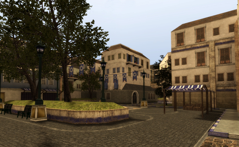 Romania is one the maps I am most proud of, one that went through 3 or 4 very different revisions before coming to rest on the S shaped configuration that made the final game. The map ended up as a passage through a small (semi-Romanian) town, featuring many high vantage points, looming buildings and quick shortcuts across the map. The majority of the textures were my own.